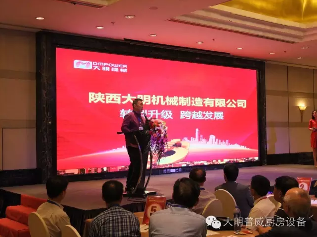 陜西餐飲商會(huì)會(huì)長(zhǎng)、陜西龍?chǎng)渭瘓F(tuán)董事長(zhǎng)聶磊先生向大會(huì)做了精彩講話,分享了與大明機(jī)械結(jié)緣的心得體會(huì),并代表陜西省餐飲企業(yè)對(duì)大明機(jī)械的新三板上市表示了熱烈的祝賀!并對(duì)建設(shè)運(yùn)營(yíng)互聯(lián)網(wǎng)思維的“中央廚房大餐飲”模式信心滿滿,充滿肯定和期待。